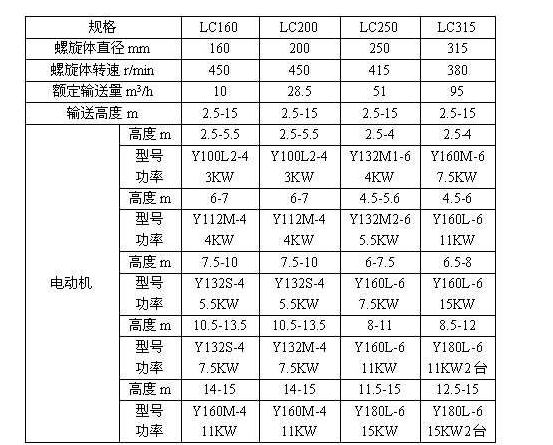 六、LC型垂直螺旋保送機規格及手藝參數: