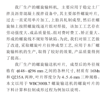 螺旋保送機的螺旋葉片有實體螺旋面、帶式螺旋面和葉片螺旋面三種情勢,此中,葉片式螺旋面利用絕對較少,首要用于保送粘度較大和可緊縮性物料,這類螺懸面型,在實現保送功課進程中,同時具備并實現對物料的攪拌、夾雜等功效。
